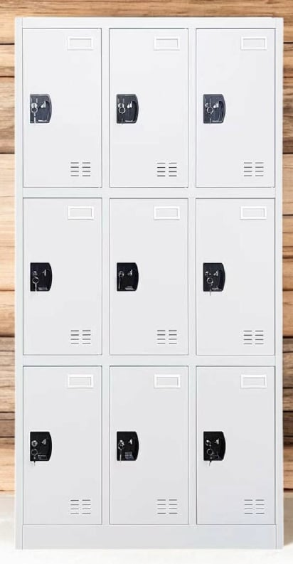 • 9-Door Storage Locker provides storage and security for multiple people.